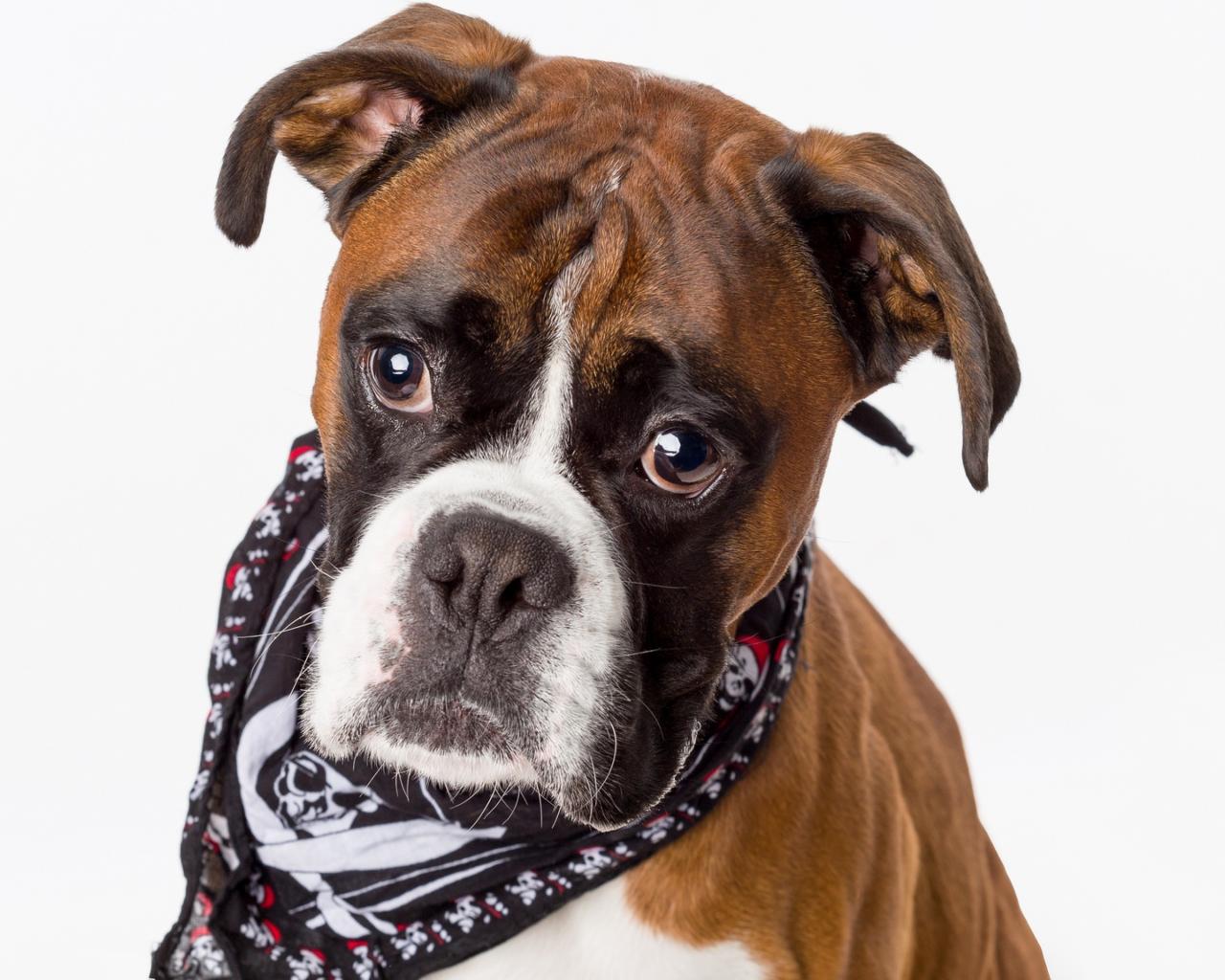 Обои Боксер с платком на шее на сером фоне