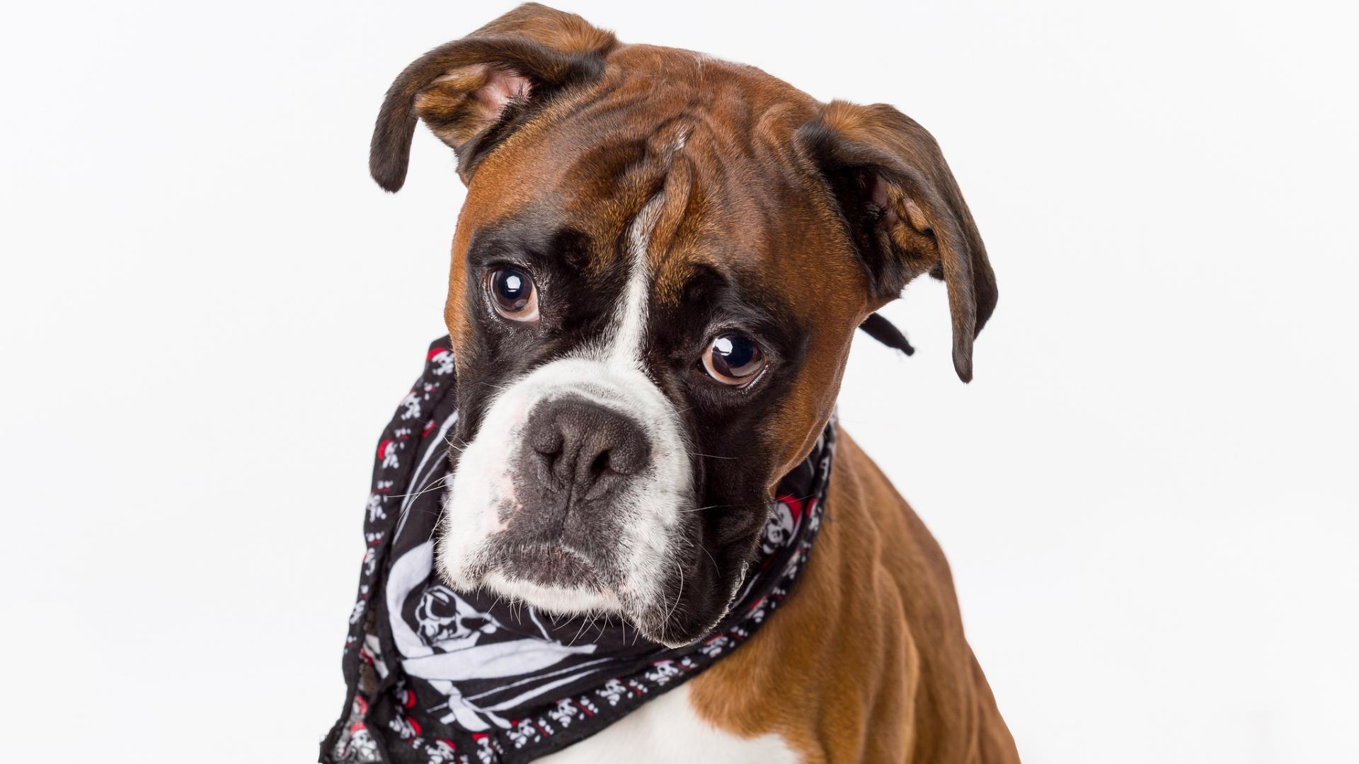 Обои Боксер с платком на шее на сером фоне