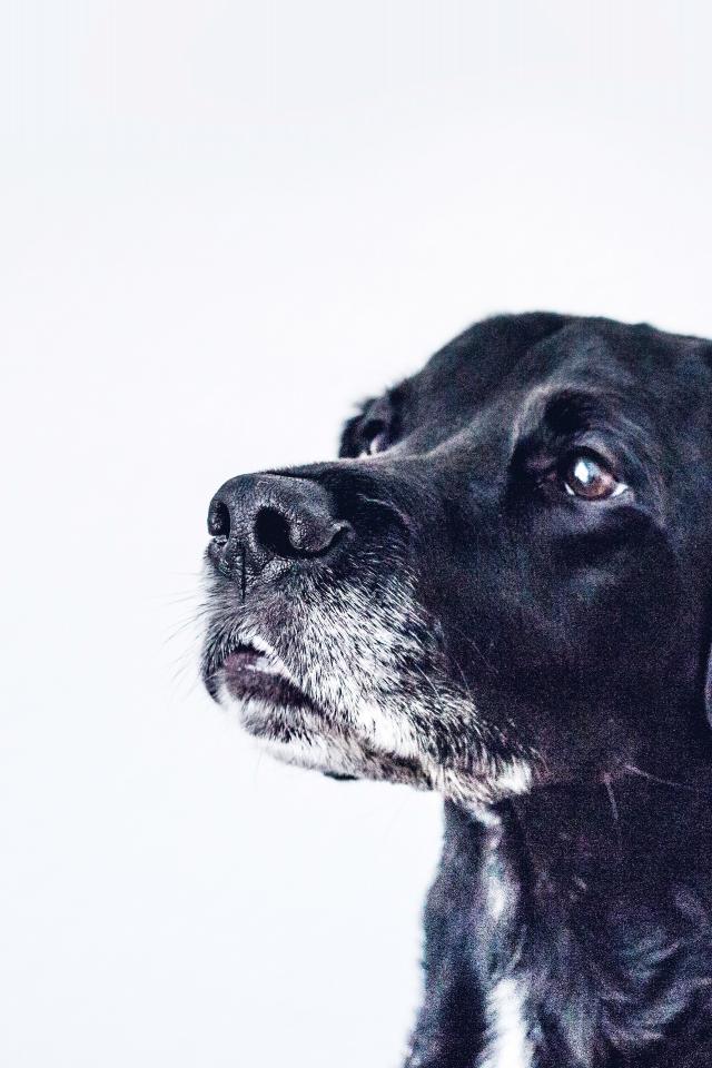 Обои Морда черного дога на сером фоне