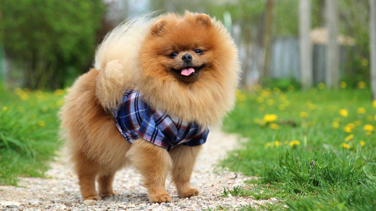 Обои Смешной пушистый шпиц в рубашке