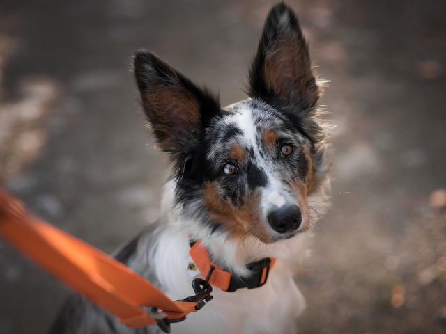 Обои Грустный взгляд собаки породы бордер колли на поводке