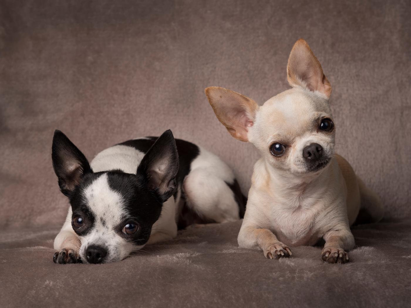 Обои Две маленьких собаки породы чихуахуа на сером фоне