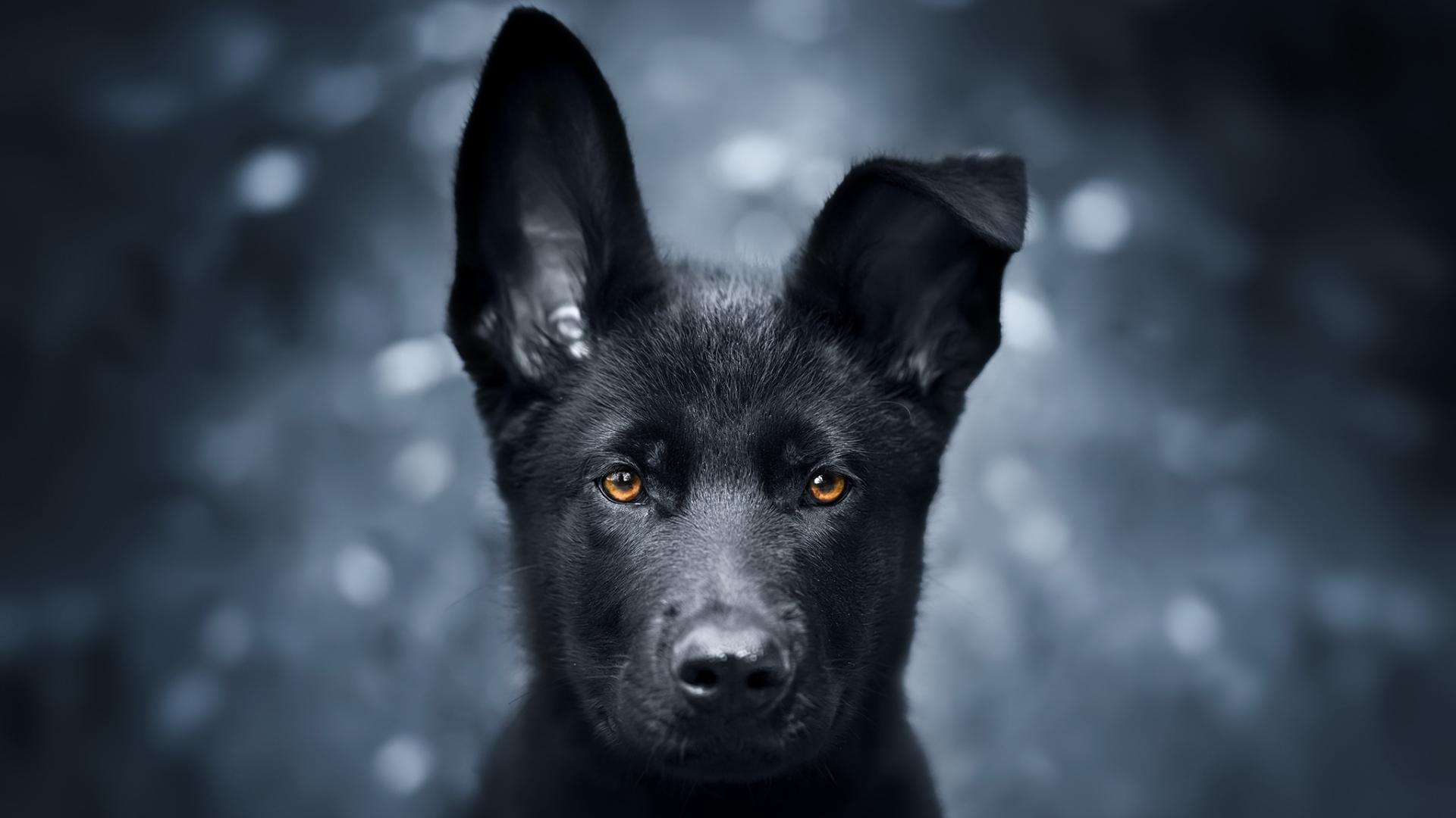 Обои Черный щенок овчарки с опущенным ухом
