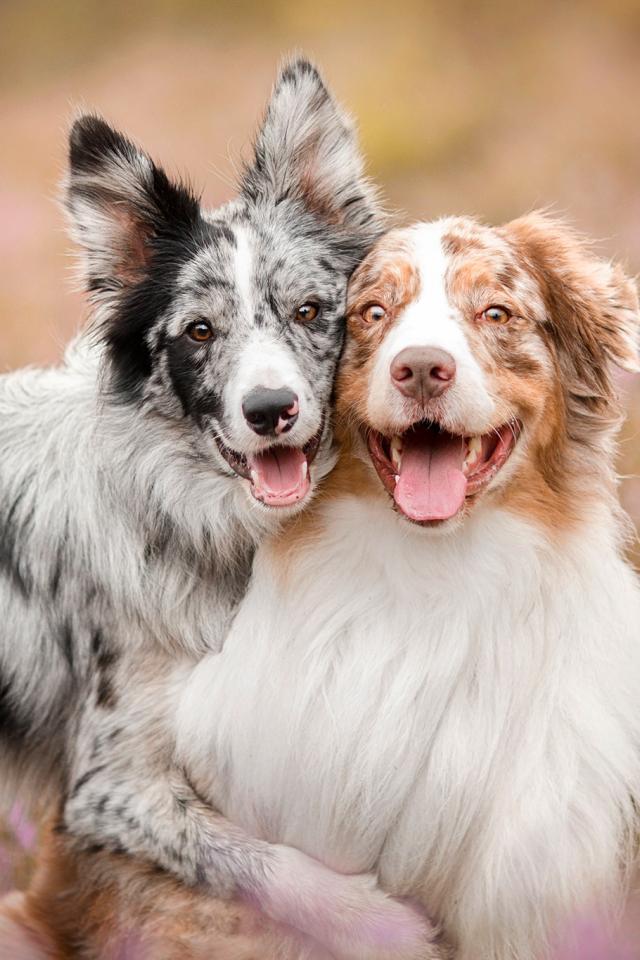 Обои Две собаки породы австралийская овчарка с высунутым языком