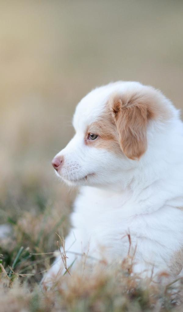 Обои Маленький щенок австралийской овчарки сидит на траве