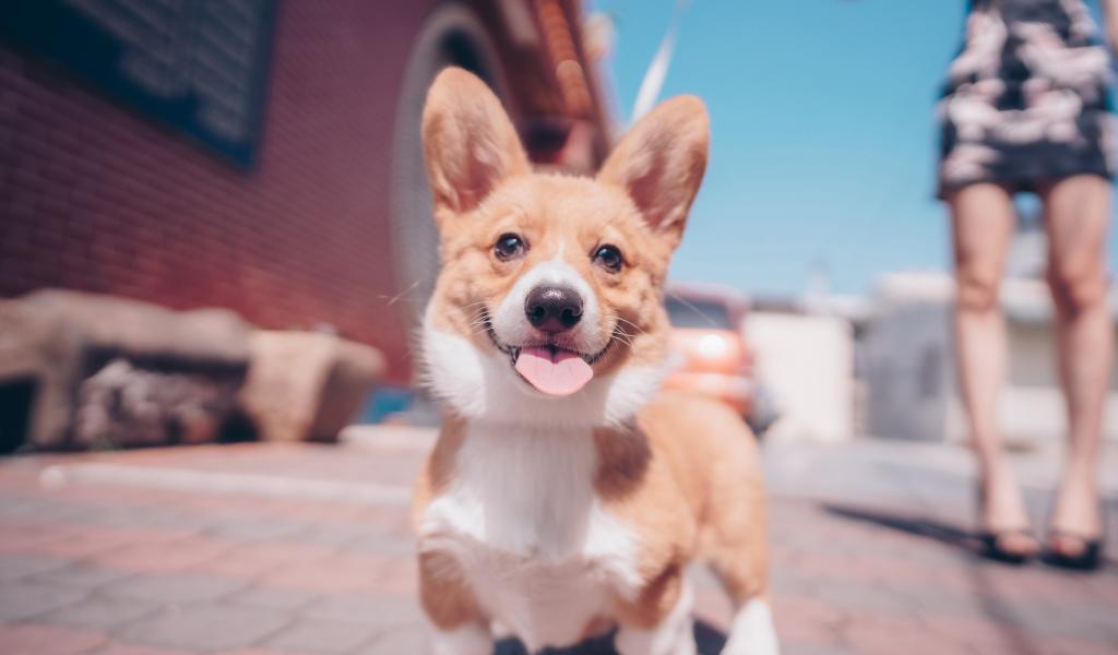 Обои Смешной пес породы вельш-корги с высунутым языком