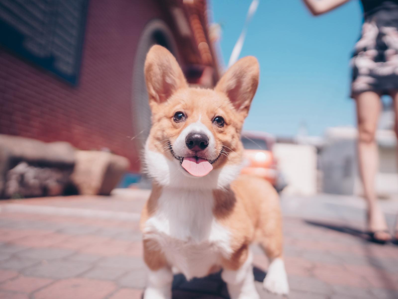 Обои Смешной пес породы вельш-корги с высунутым языком