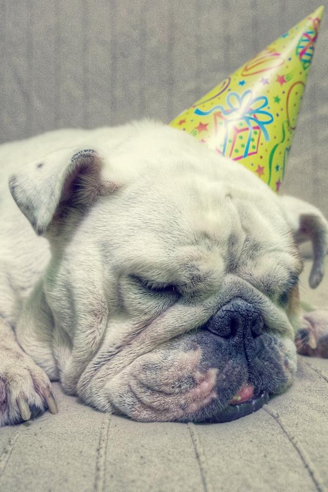 Обои Бульдог спит в праздничном колпаке