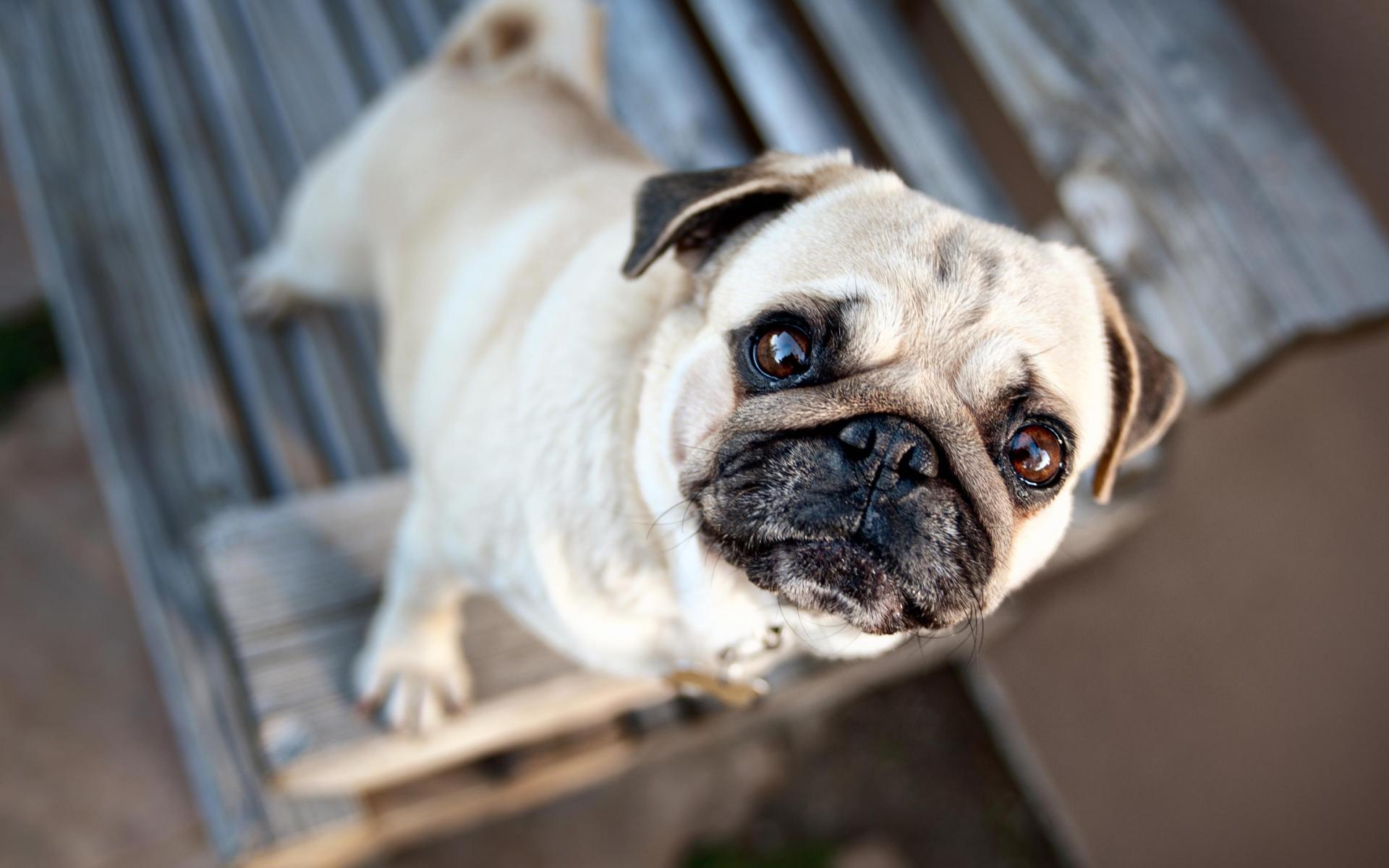 Обои Грустный мопс смотрит на хозяина
