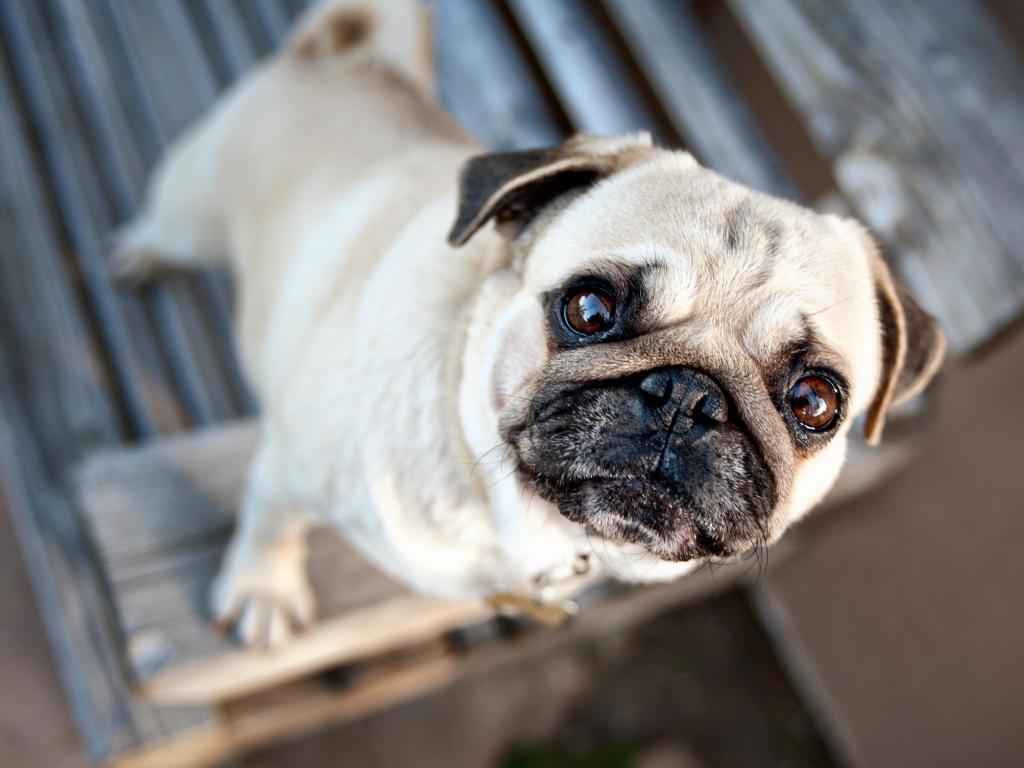 Обои Грустный мопс смотрит на хозяина