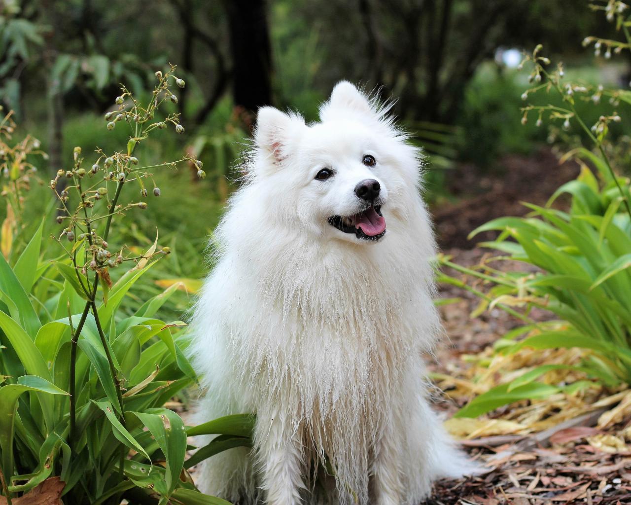 Обои Белая собака породы шпиц с высунутым языком