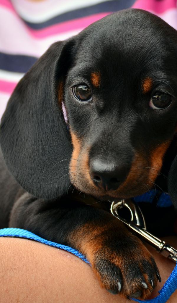 Обои Грустный лабрадор сидит на дороге с синим поводком в зубах