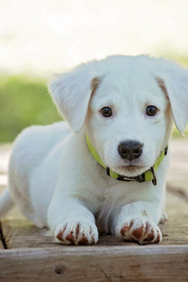 Обои Маленький милый щенок золотистого ретривера лежит на мосту