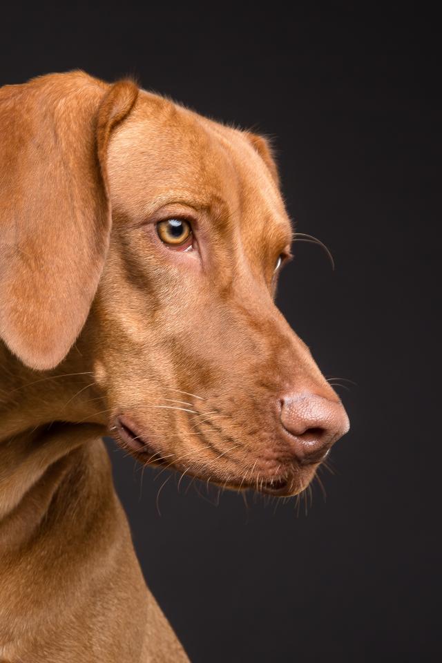 Обои Большой породистый коричневый конь на черном фоне