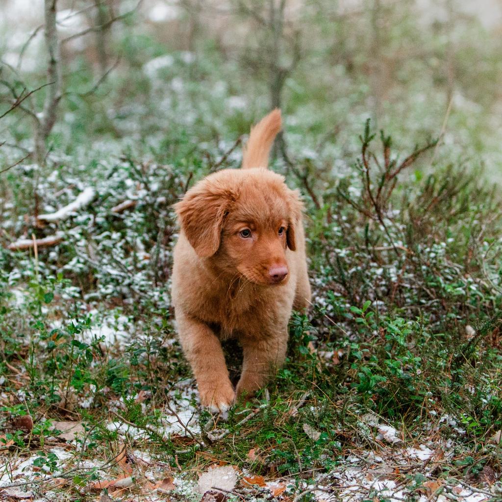 Обои Маленький щенок новошотландский ретривер идет по траве