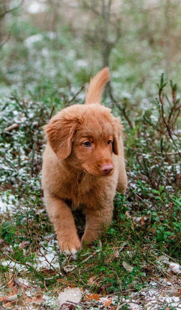 Обои Маленький щенок новошотландский ретривер идет по траве
