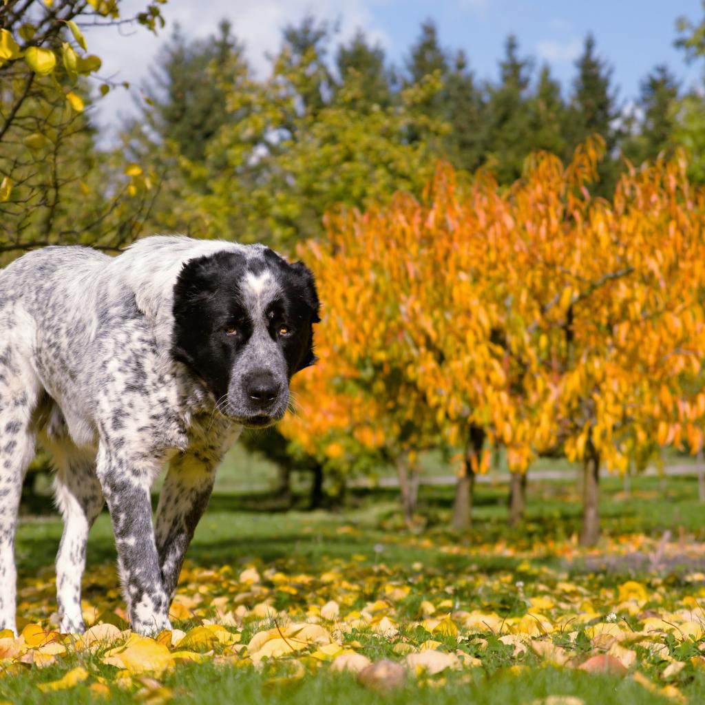 Обои Большой алабай идет по парку осенью