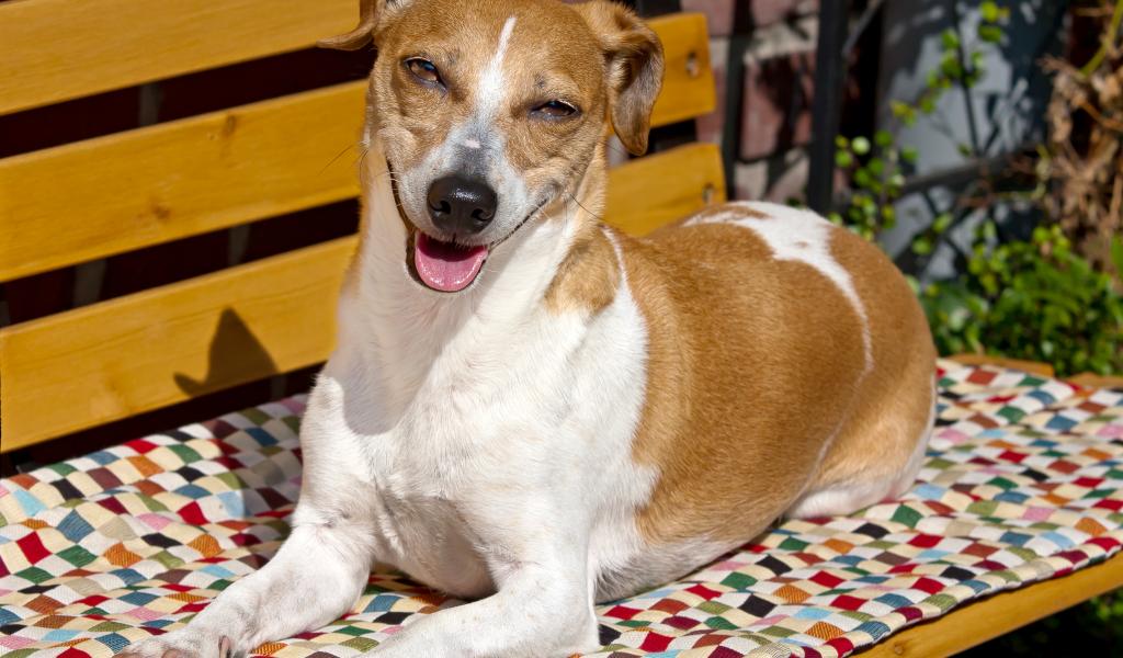 Обои Довольный пес породы Джек рассел терьер на лавке