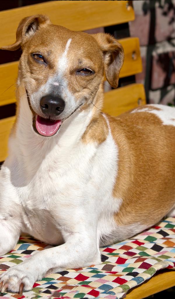 Обои Довольный пес породы Джек рассел терьер на лавке