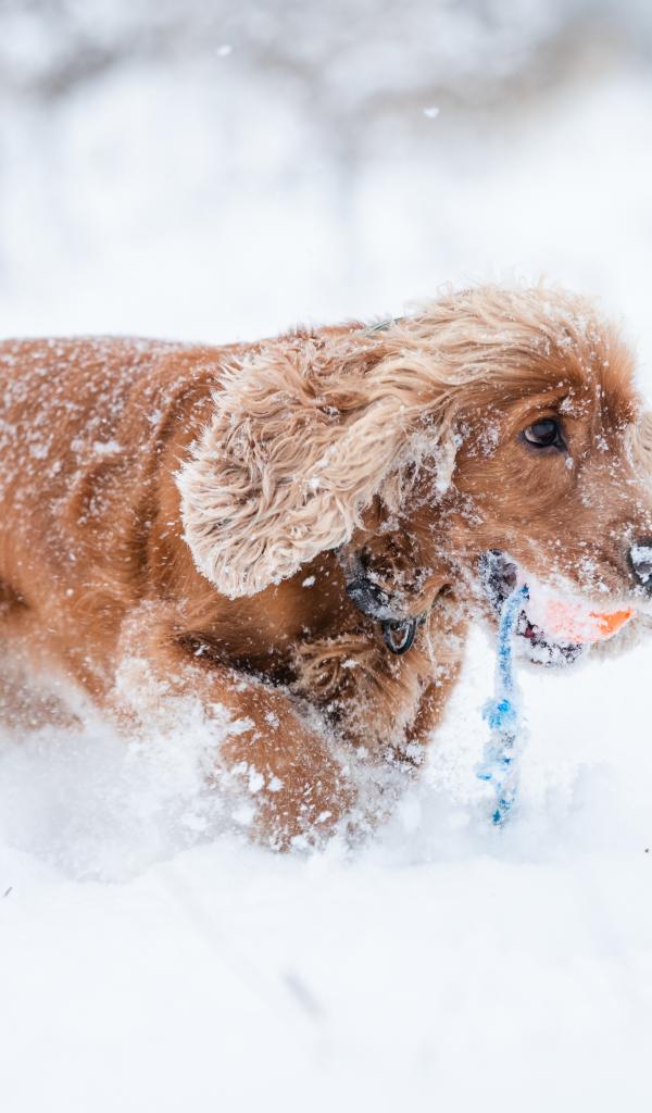 Обои Пес породы Кинг-чарльз-спаниель стоит на снегу