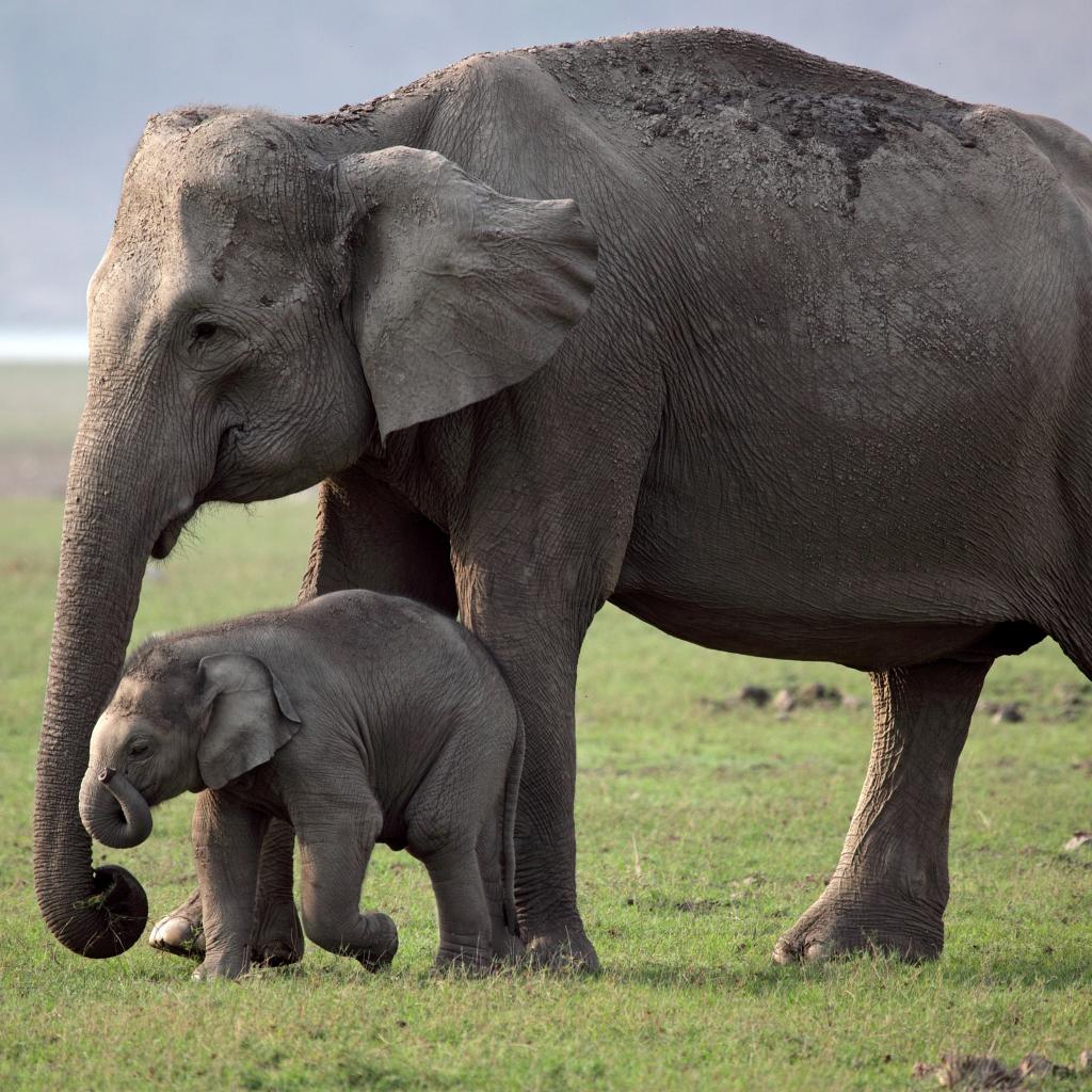 Обои Мама слониха и её детеныш