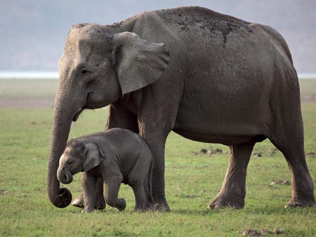 Обои Мама слониха и её детеныш