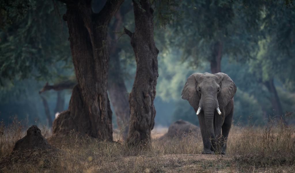 Обои Большой серый слон идет у дерева