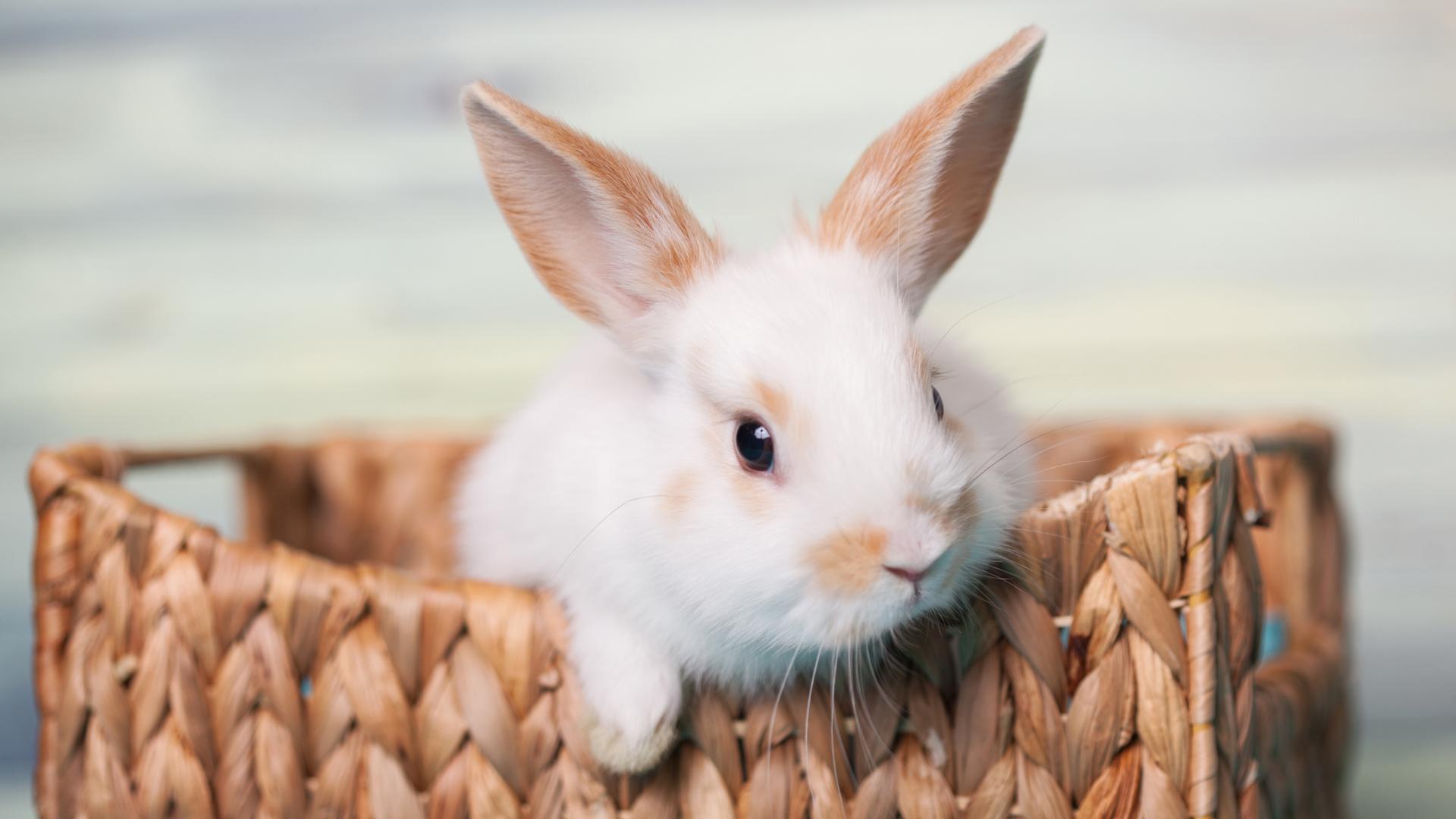 Обои Маленький декоративный кролик в корзине