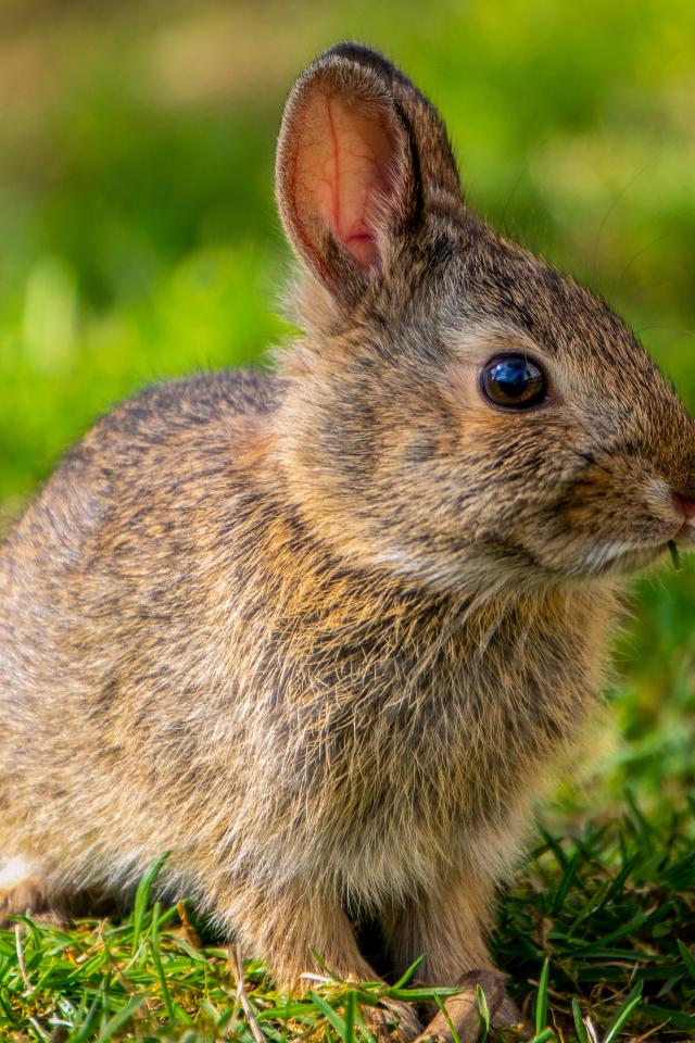 Обои Дикий серый заяц на зеленой траве