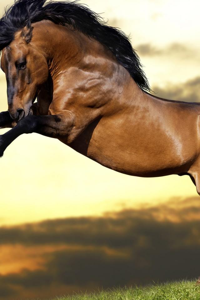Обои Красивый коричневый конь с черной гривой встал на дыбы