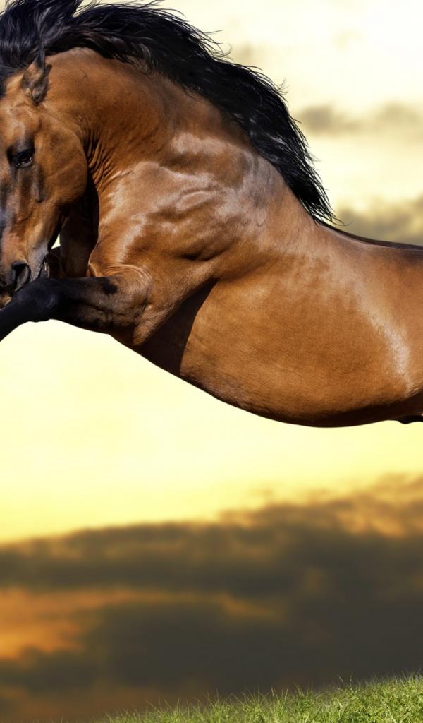 Обои Красивый коричневый конь с черной гривой встал на дыбы