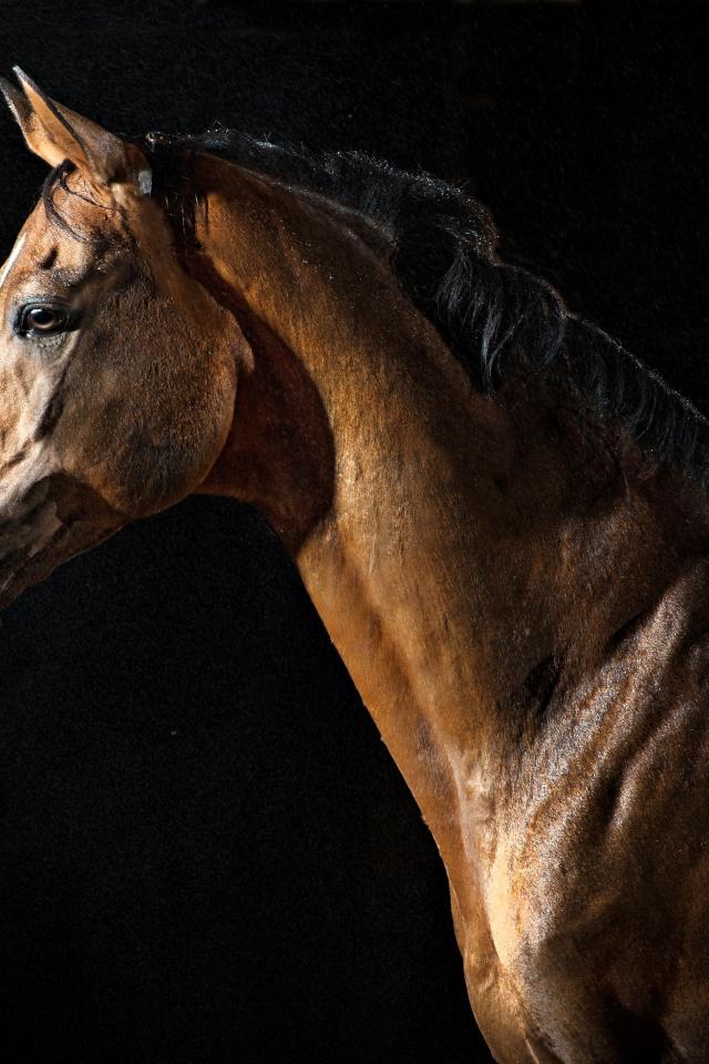 Обои Большой коричневый конь на черном фоне