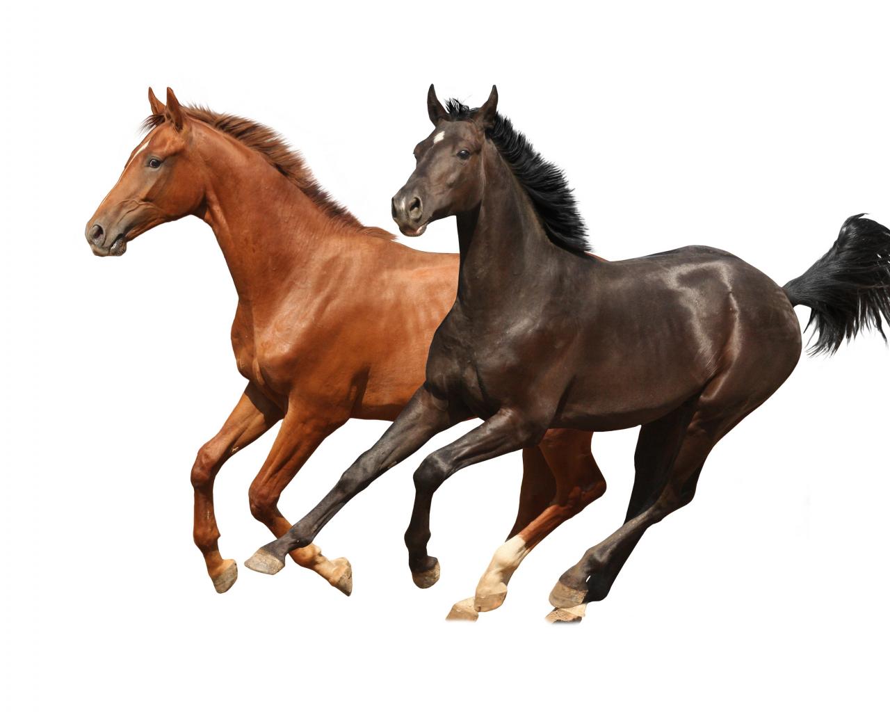 Обои Две коричневых лошади скачут на белом фоне