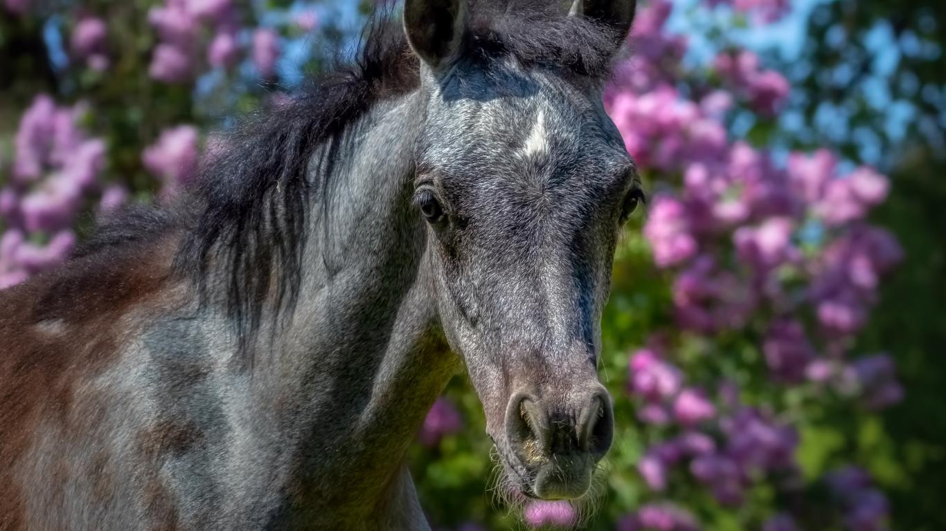 » Обои Красивая лошадь на фоне цветов крупным планом