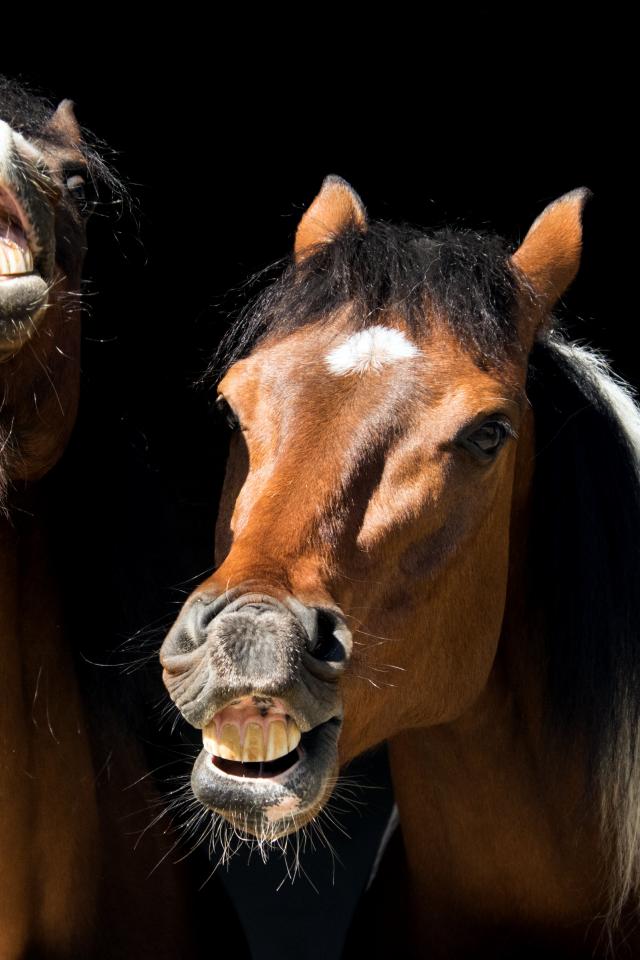 Обои Две ржущие лошади на черном фоне