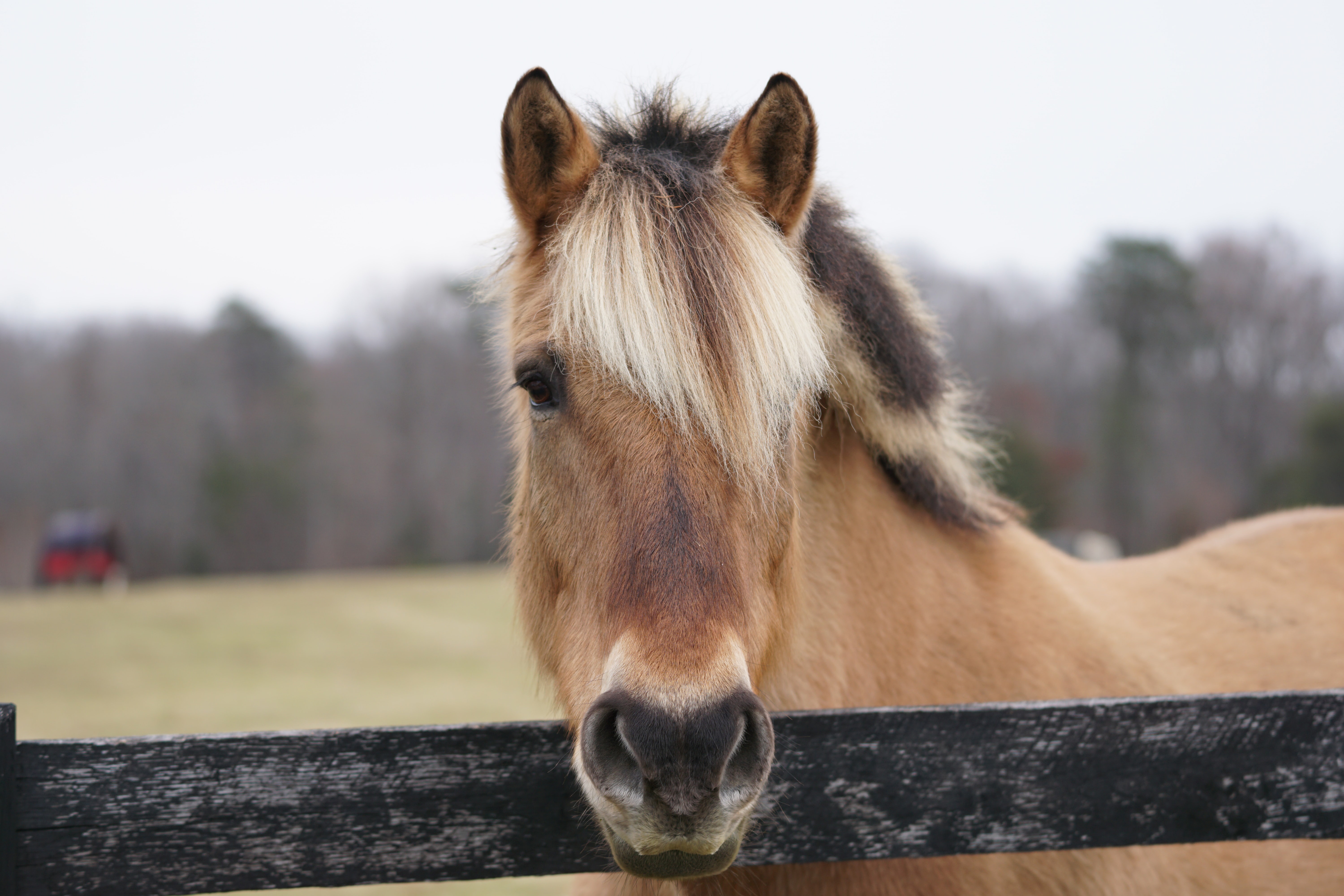 Обои Коричневая лошадь с челкой на ферме