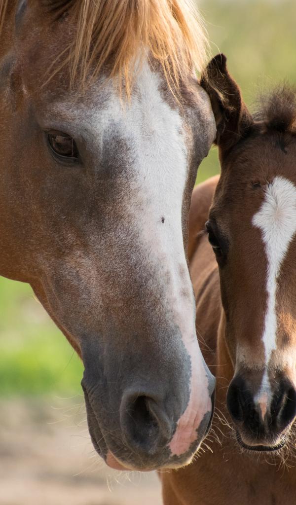 Обои Коричневая лошадь с жеребенком