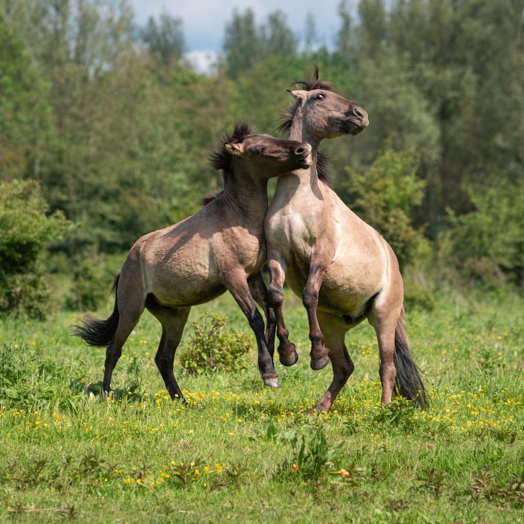 Обои Две лошади играют на зеленой траве