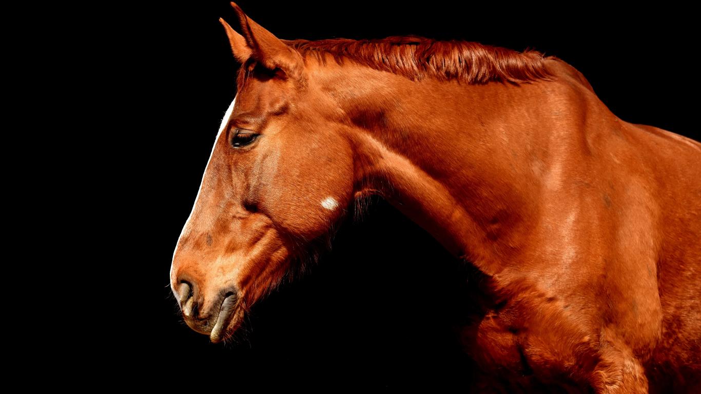 Обои Коричневый конь крупным планом на черном фоне