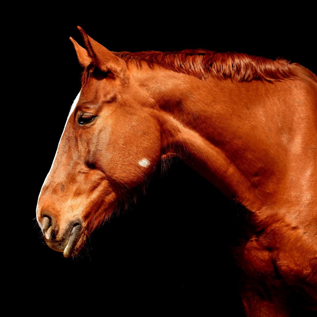 Обои Коричневый конь крупным планом на черном фоне