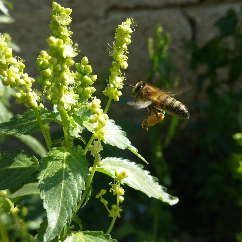 Обои Пчела садится на зеленое растение