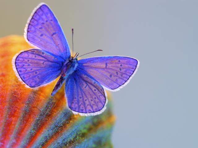 Обои Маленькая голубая бабочка крупным планом