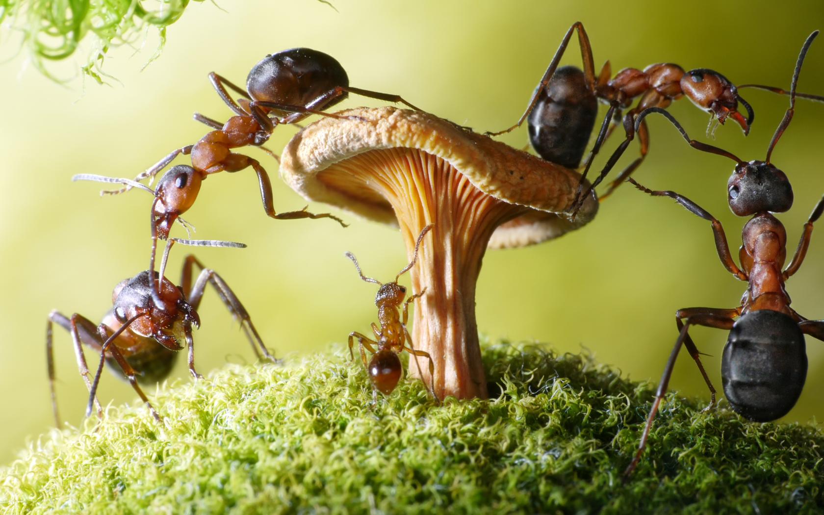 Обои Муравья на грибе крупным планом