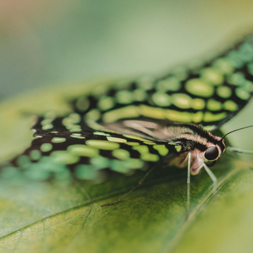 Обои Красивая бабочка сидит на зеленом листе