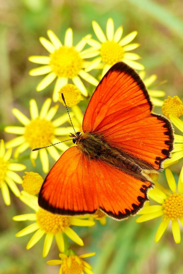 Обои Красивая оранжевая бабочка сидит на желтом цветке