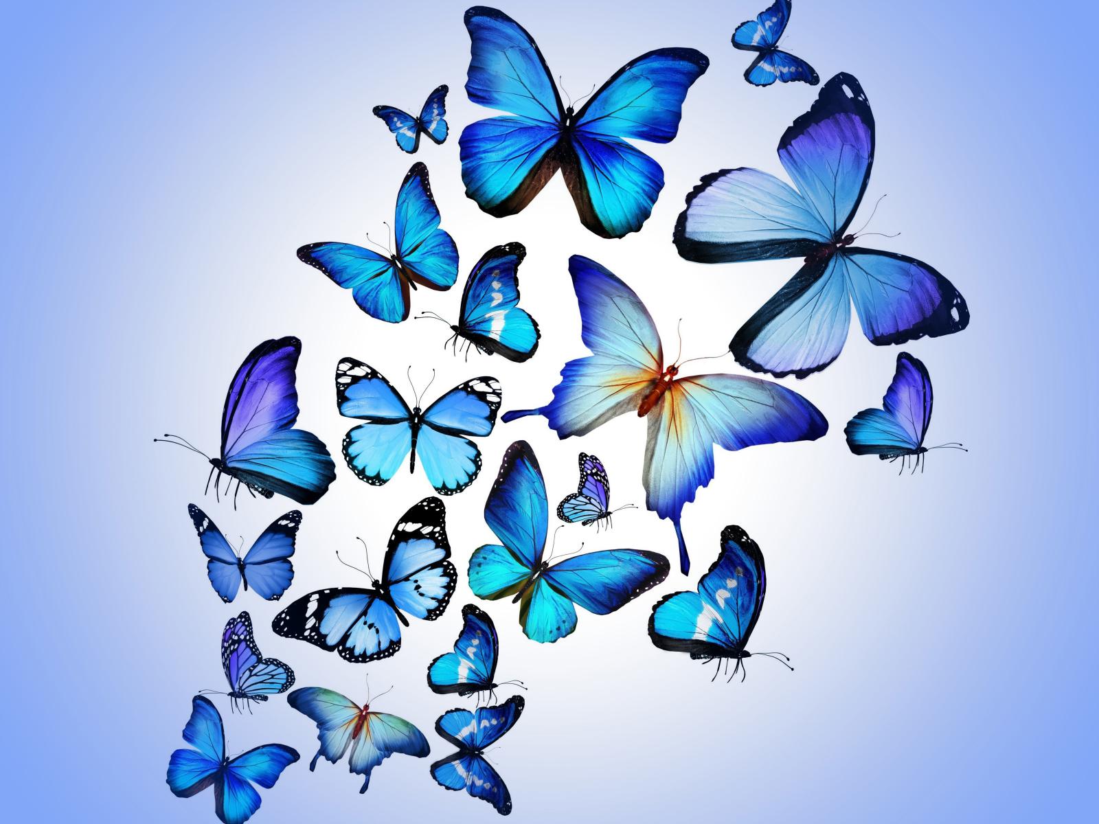 Обои Много синих бабочек на голубом фоне
