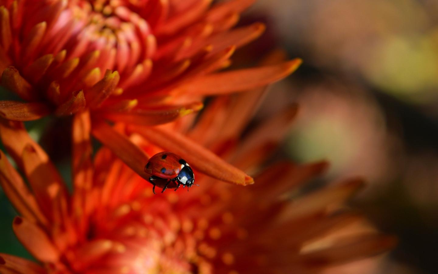 Обои Маленькая красная божья коровка на цветке