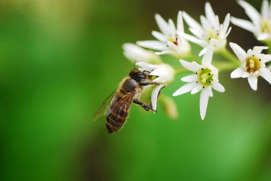 Обои Пчела собирает нектар с белых цветов
