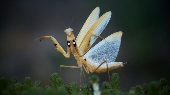 Обои Большой богомол с прозрачными крыльями