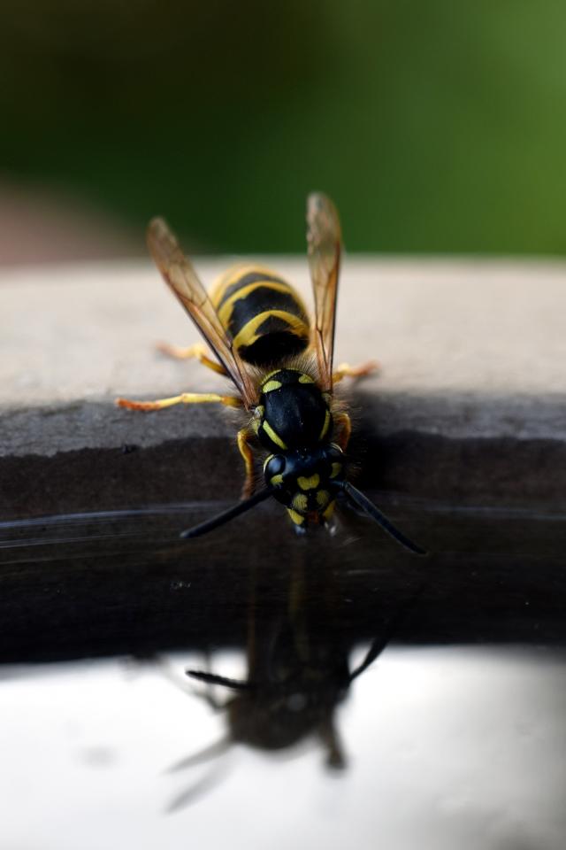 » Обои Оса пьет воду из бочки
